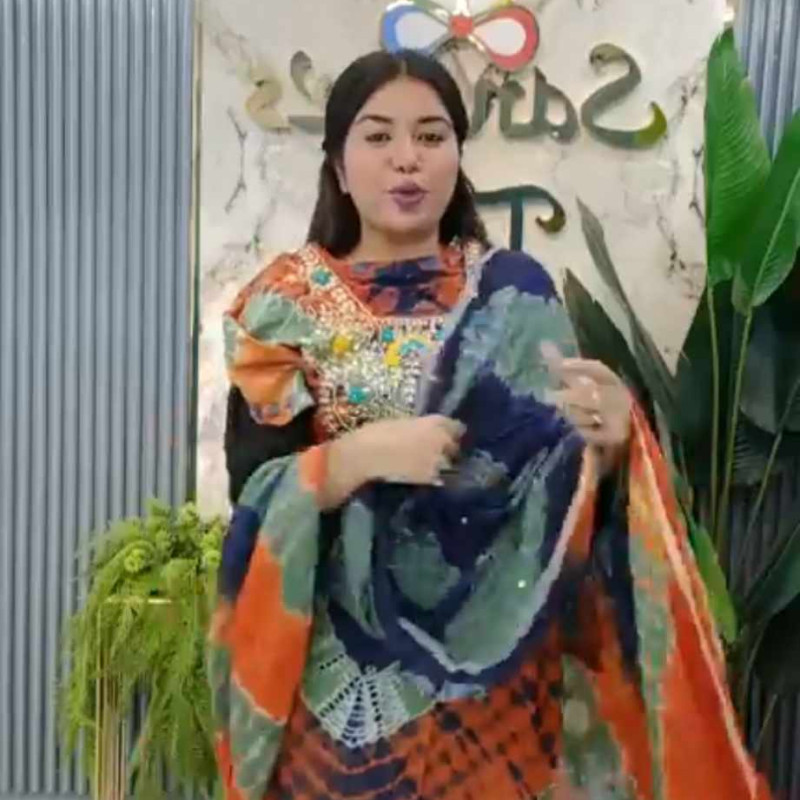 Pure Silk Cotton Tie Dye Karchupi Stone Work Semi Stitch three piece Body - 50, Long - 42